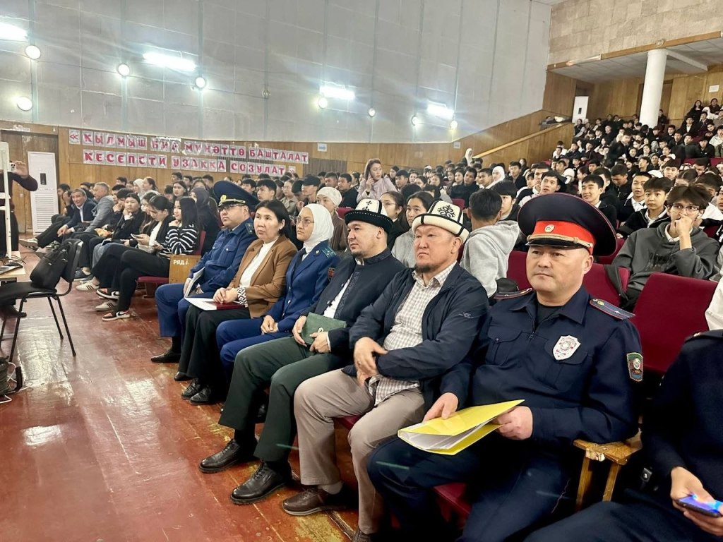 Иш-чаранын алкагында кылмыштуулуктун кесепеттери тууралуу видеоролик көрсөтүлүп, окуучуларга терс көрүнүштөрдүн алдын алуу боюнча түшүндүрмөлөр берилди.